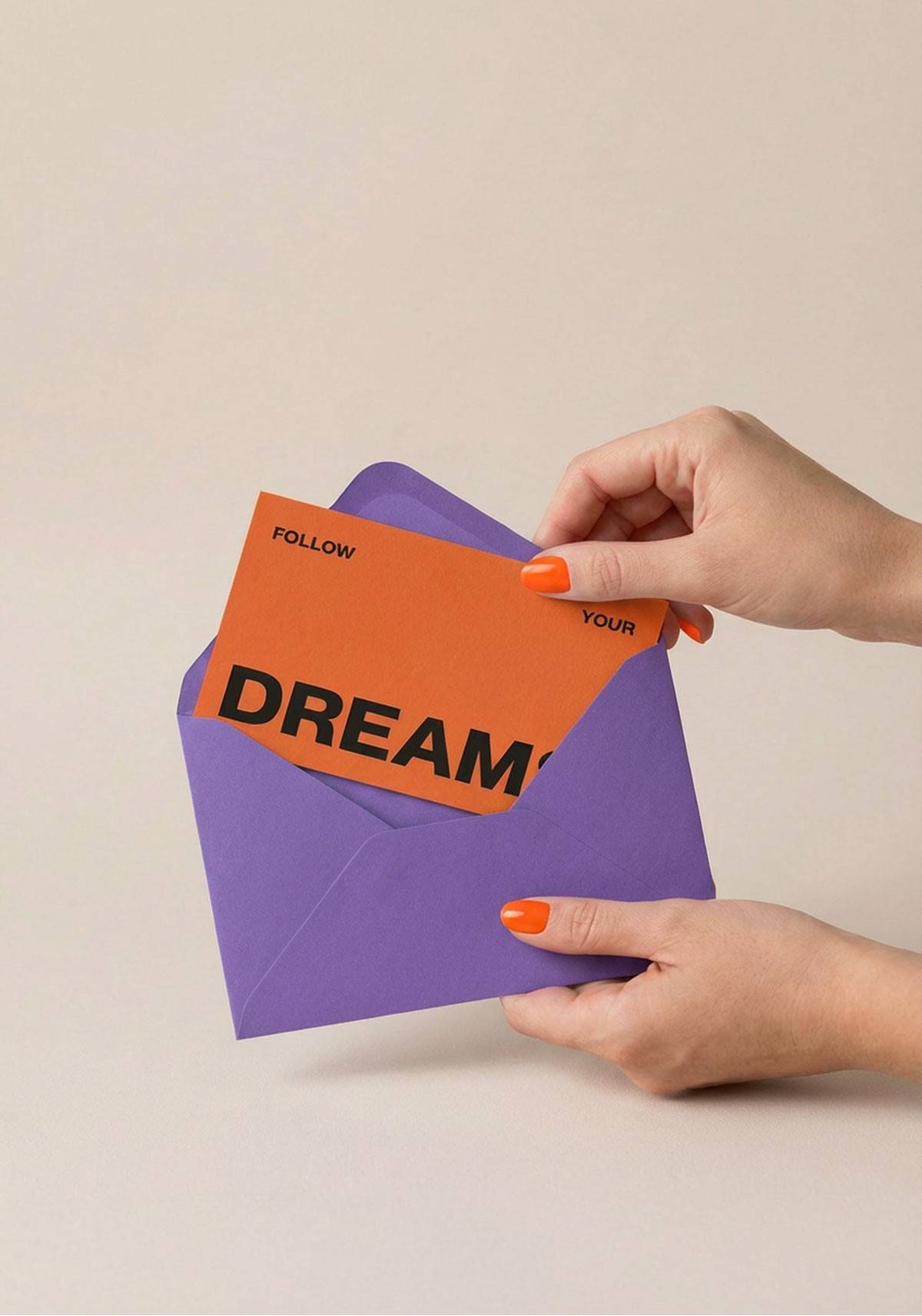 The "Follow Your Dreams" card is a gentle and inspiring invitation to pursue your dearest ambitions. Printed on 350gsm paper, it combines elegance with a motivational message.
