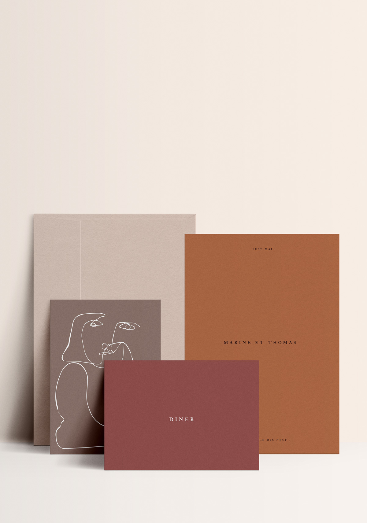 Vous trouverez dans cette rubrique de Papier and Co une large gamme de produits de papeterie originaux, au design tendance : faire part, carton d’invitation, RSVP, carte réponse, enveloppes et intérieur d’enveloppes, menu, plan de table, marque place, numéro de table, remerciements, … Nous vous proposons des sets de papeterie complets et des collections de thèmes variés, toujours élégantes et inspirées des tendances design du monde entier : graphique, bohème chic, minimaliste, nature, coloré, en collaboration avec des artistes, … Vous souhaitez créer une collection sur-mesure ? Originale et unique, qui reflète votre culture, vos passions ou la personnalité de votre couple ?