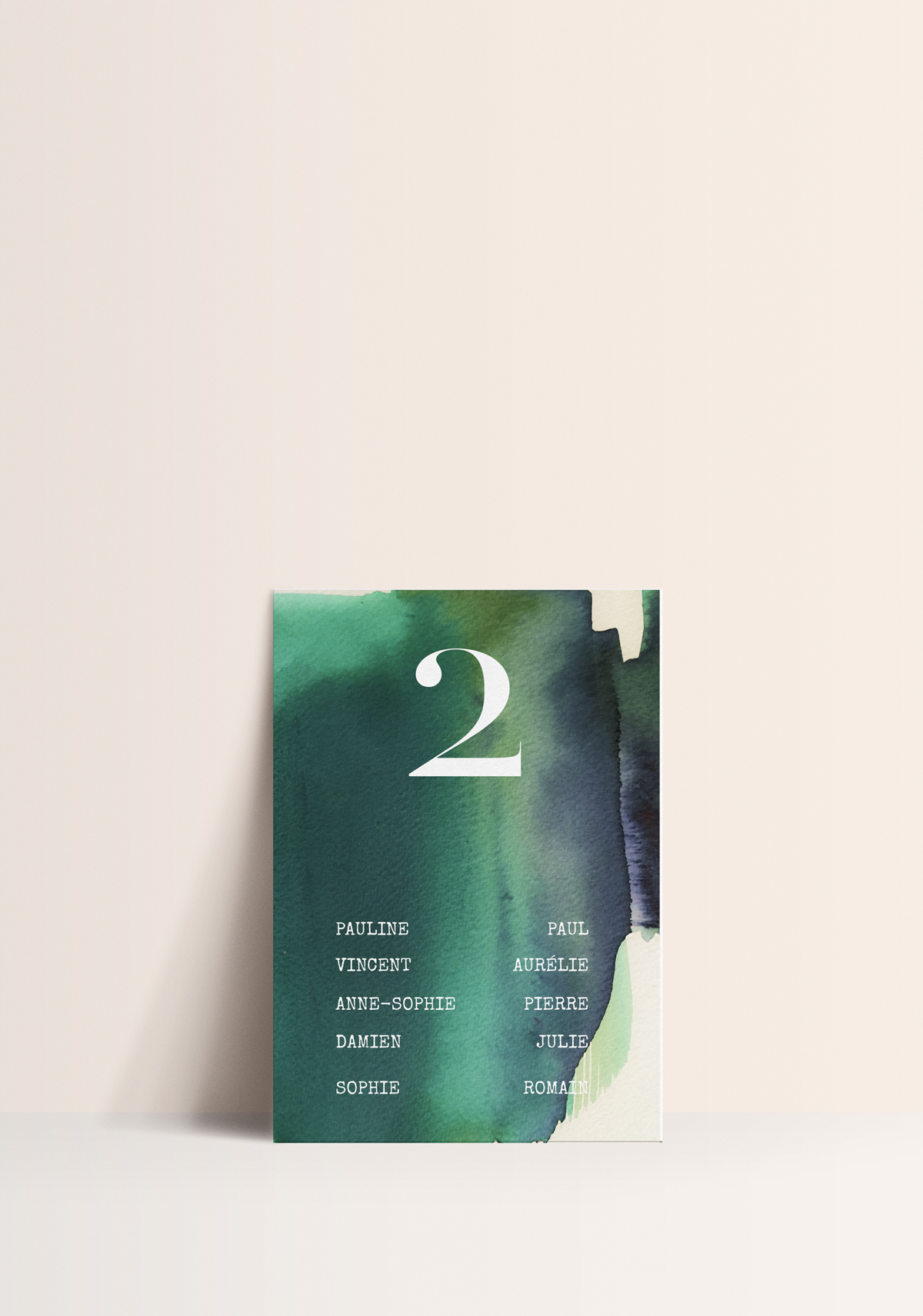 Puis il y a les noms de tables, placés au centre de la table pour que vos convives puissent les repérer en un clin d’œil. Une fois leur table identifiée, il est important que chaque place soit signalée par un marque place personnalisé au nom de l’invité.